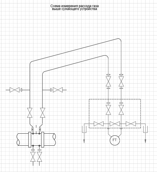 Схемы измерения расходаДля учёта потребления сред используются схемы с сужающими устройствами. Варианты размещения датчика зависят от типа среды и положения относительно сужающего элемента: