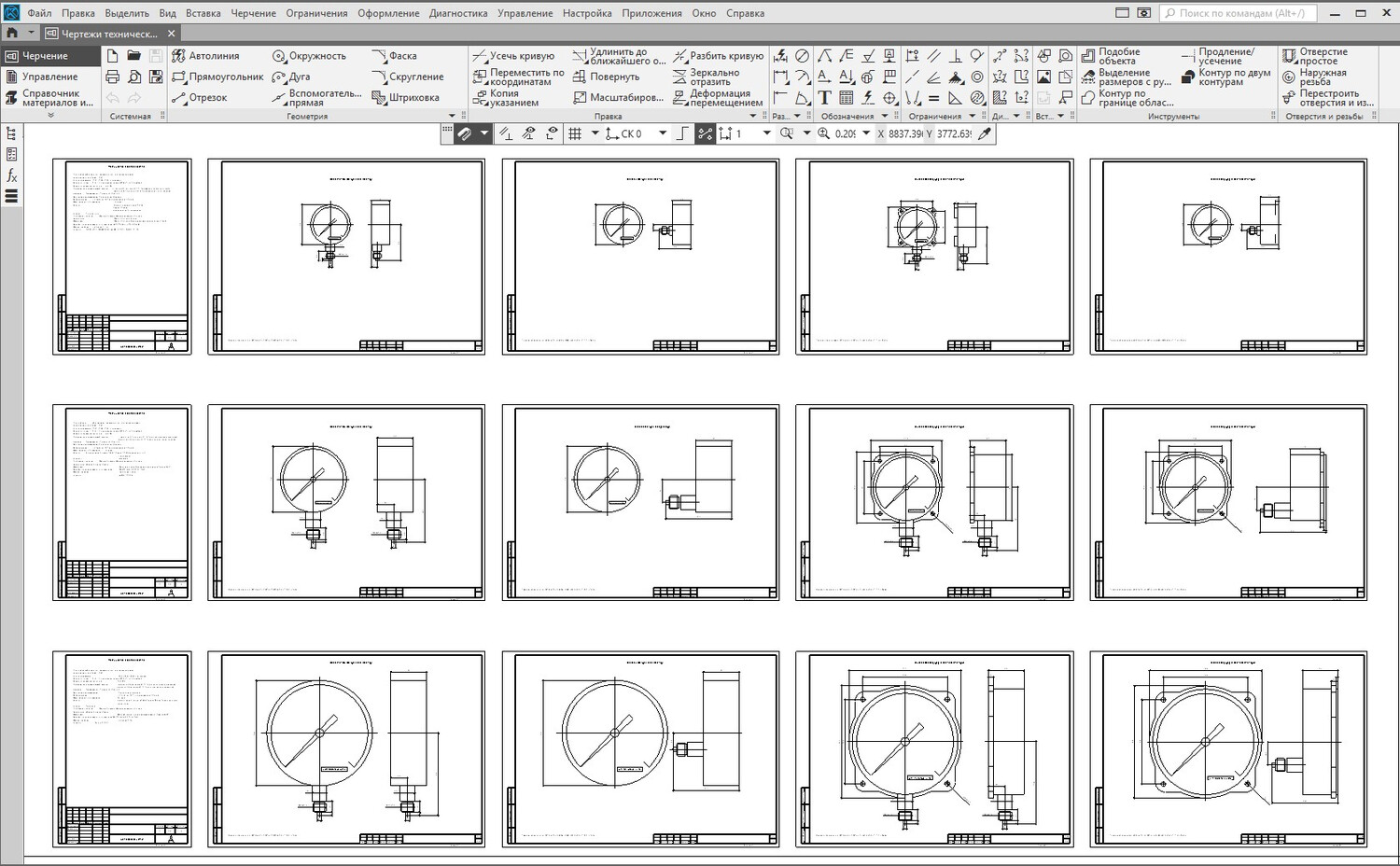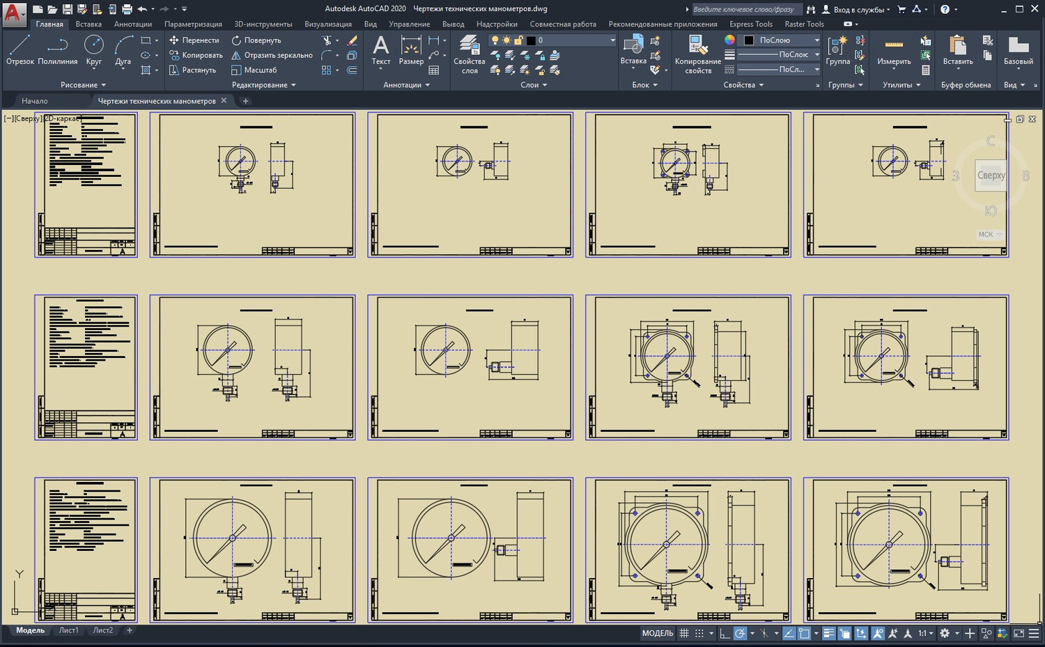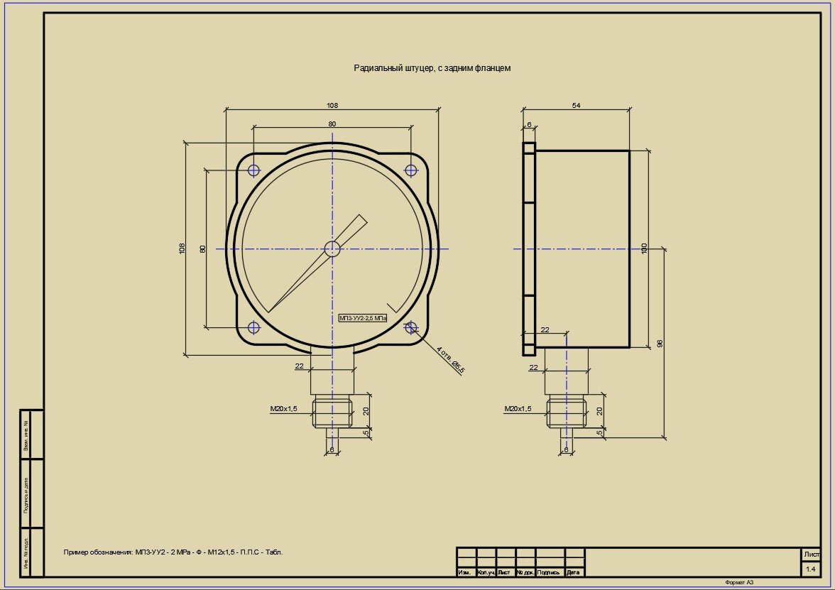 Технические манометры МП2У, МП3У, МП4У: комплект чертежей в форматах AutoCAD, КОМПАС 3D, Visio