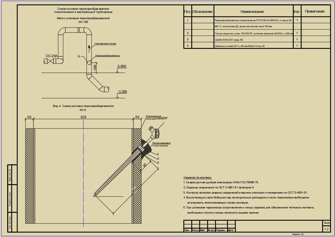 Монтаж термопреобразователей сопротивления: комплект схем для рабочей документации