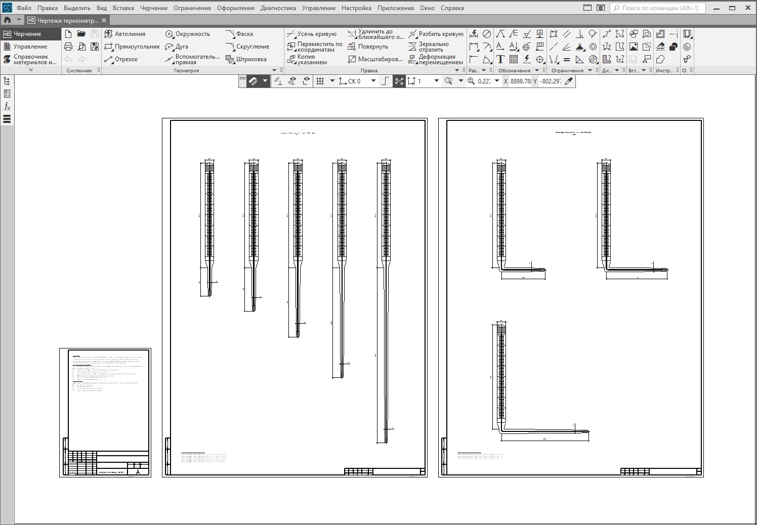 В коллекцию включены чертежи двух модификаций термометров, отвечающих отраслевым стандартам: